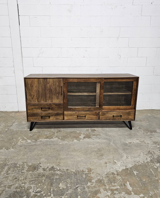 Buffet Ibiza en bois de manguier et acier brut portes vitrées