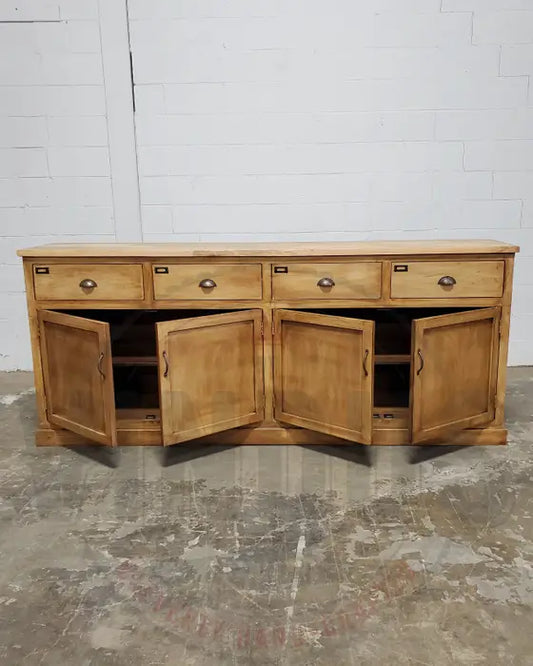 Buffet en bois de manguier avec double portes coulissantes en acier tiroirs naturel