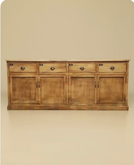 Buffet en bois de manguier avec double portes coulissantes en acier tiroirs naturel