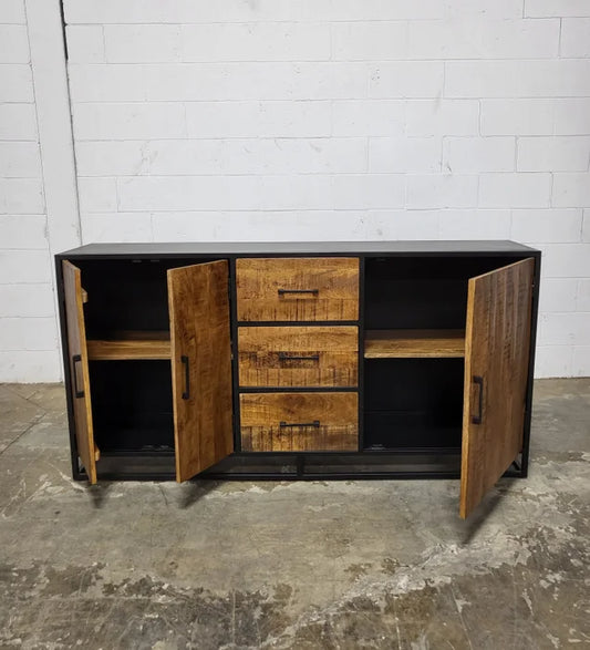 Buffet en bois recyclé avec porte en acier et 3 tiroirs