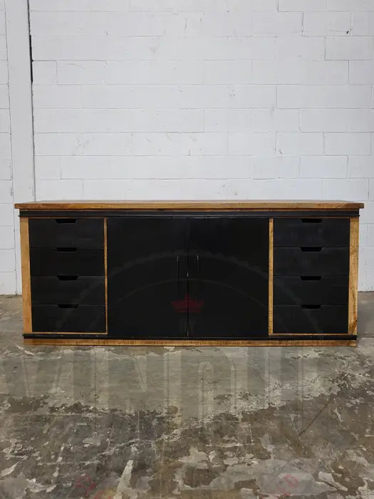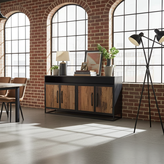 Buffet en bois de manguier avec double portes coulissantes en acier tiroirs noir