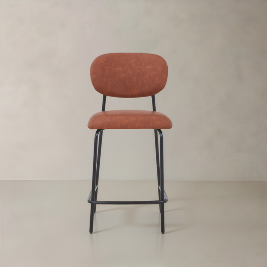 CLAPA Leather Counter Stool, Brown, 25.6"