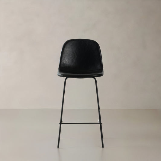 KINGSTON Leather Counter Stool, Black, 25.6"