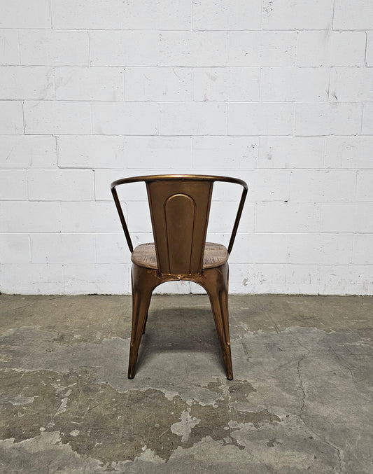 Set of 2 Industry Chairs in Gold Steel and Mango Wood Seat
