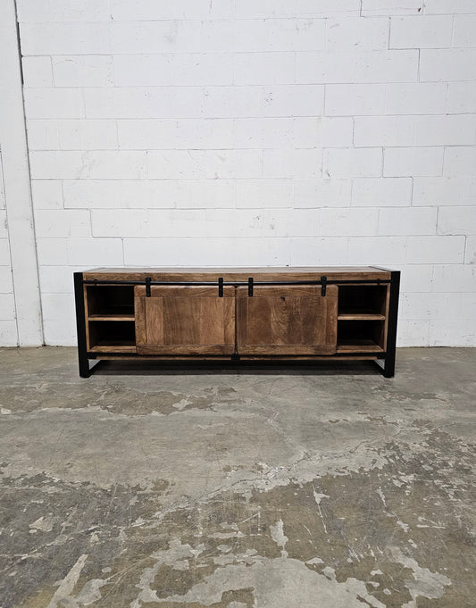 Industrial TV cabinet made of recycled wood and steel with 4 drawers