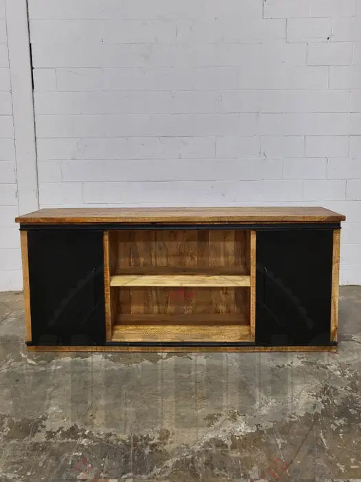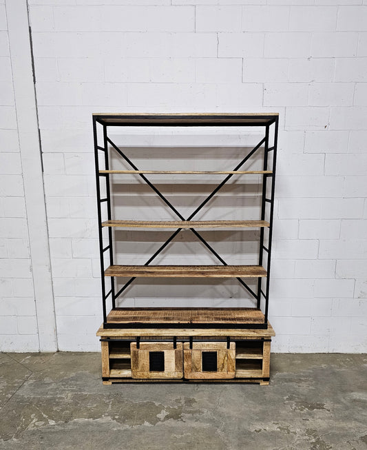 Mango wood sideboard with double sliding steel doors and natural drawers