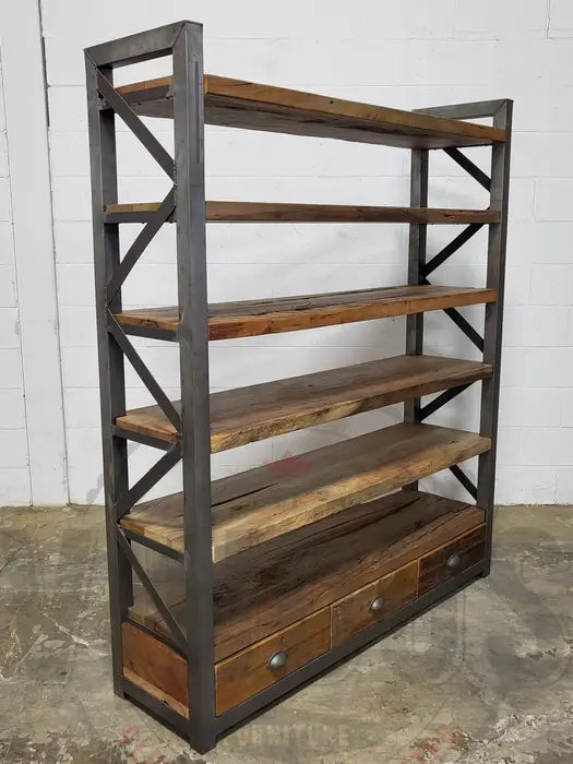 Industrial shelf in recycled wood and steel with 3 drawers