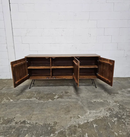 Industrial TV cabinet made of recycled wood and steel with 4 drawers