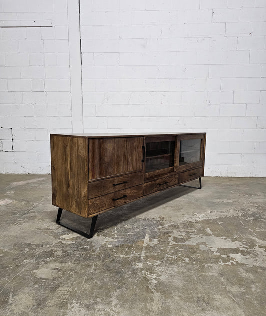 Ibiza sideboard in mango wood and raw steel with glass doors