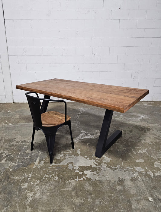 Mango wood table or desk with black steel L-shaped legs