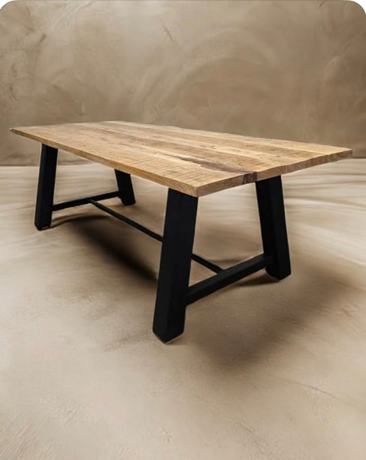 AMSTERDAM industrial dining table with mango wood top and cast steel leg