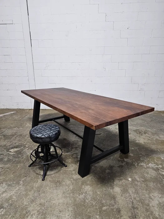 Industrial Dining Table Workbench Style Black Steel Leg with Acacia Top