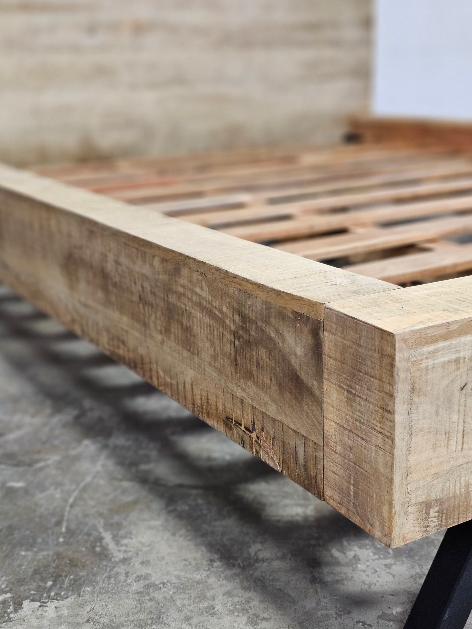 Treat yourself to an unparalleled sleeping experience with our solid mango wood bed frame . Designed to combine timeless aesthetics and sturdiness, this bed frame is a centerpiece that will transform your bedroom into a haven of peace and style.