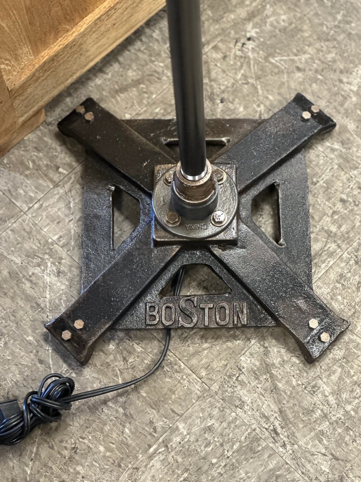 This floor lamp is mounted on a cast iron base with the Boston inscription.