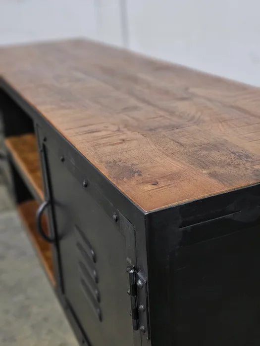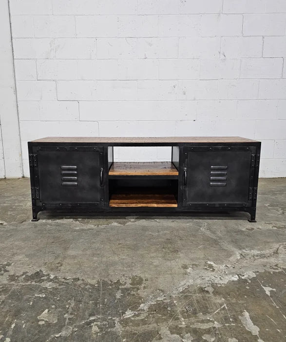 Industrial Style TV Stand or Entryway Bench in Wood and Steel Locker Style