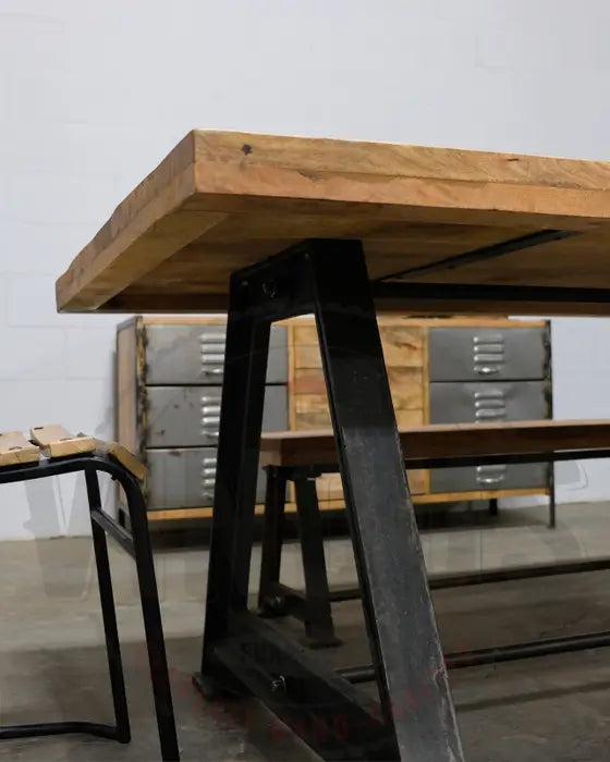 AMSTERDAM industrial dining table with mango wood top and cast steel leg