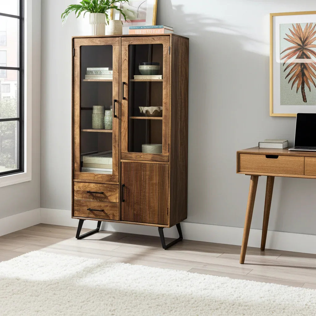 Armoire Arezzo : Vitrine en Manguier au Design Vertical