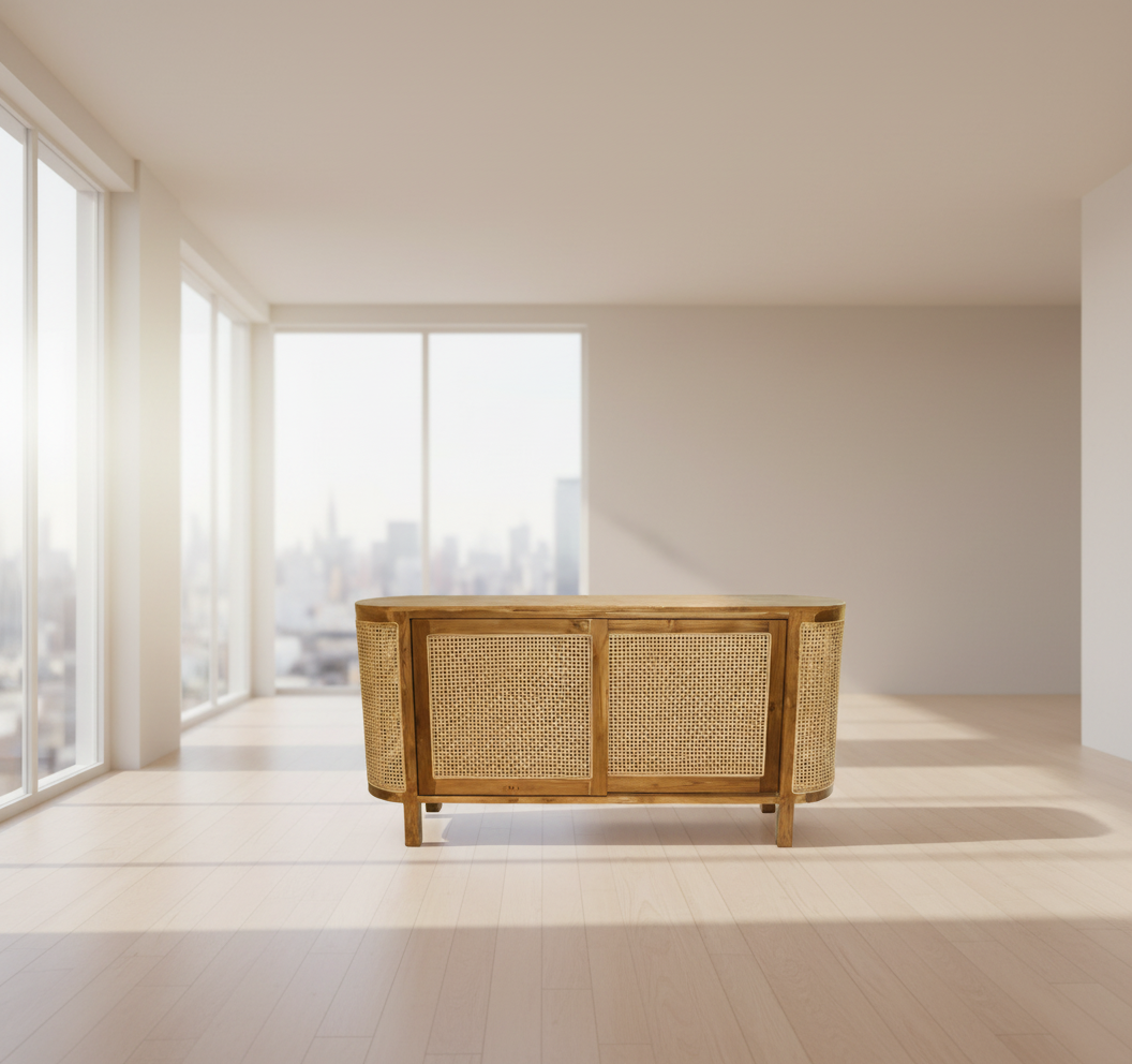 Le buffet Alex, avec ses 2 portes coulissantes, est l'incarnation parfaite de l'élégance et de la fonctionnalité. Fabriqué à partir de matériaux de haute qualité, tels que le bois de teck et le rotin, il promet non seulement durabilité et robustesse, mais aussi une esthétique naturelle et raffinée. Ses formes arrondies lui confèrent une allure douce et accueillante, permettant à ce meuble de s'intégrer harmonieusement dans divers espaces de votre domicile, qu'il s'agisse de votre salle à manger ou de votre chambre à coucher. Opter pour le buffet Alex, c'est choisir un meuble qui allie beauté naturelle et praticité, tout en créant une ambiance chaleureuse et pleine de charme dans votre intérieur.