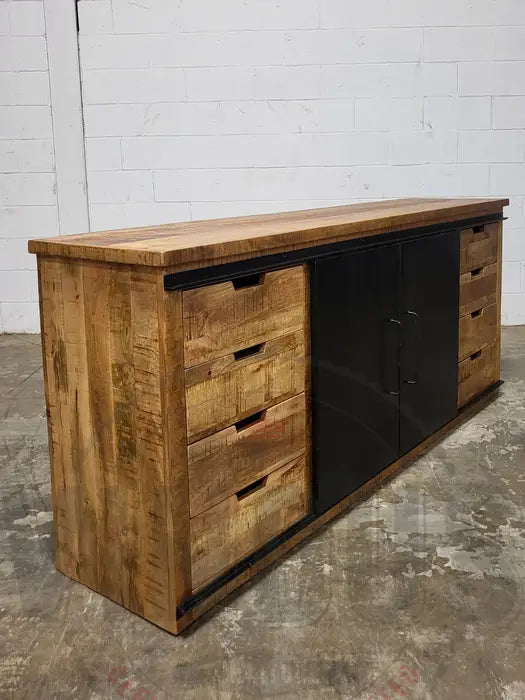 Buffet en bois de manguier avec double portes coulissantes en acier tiroirs noir