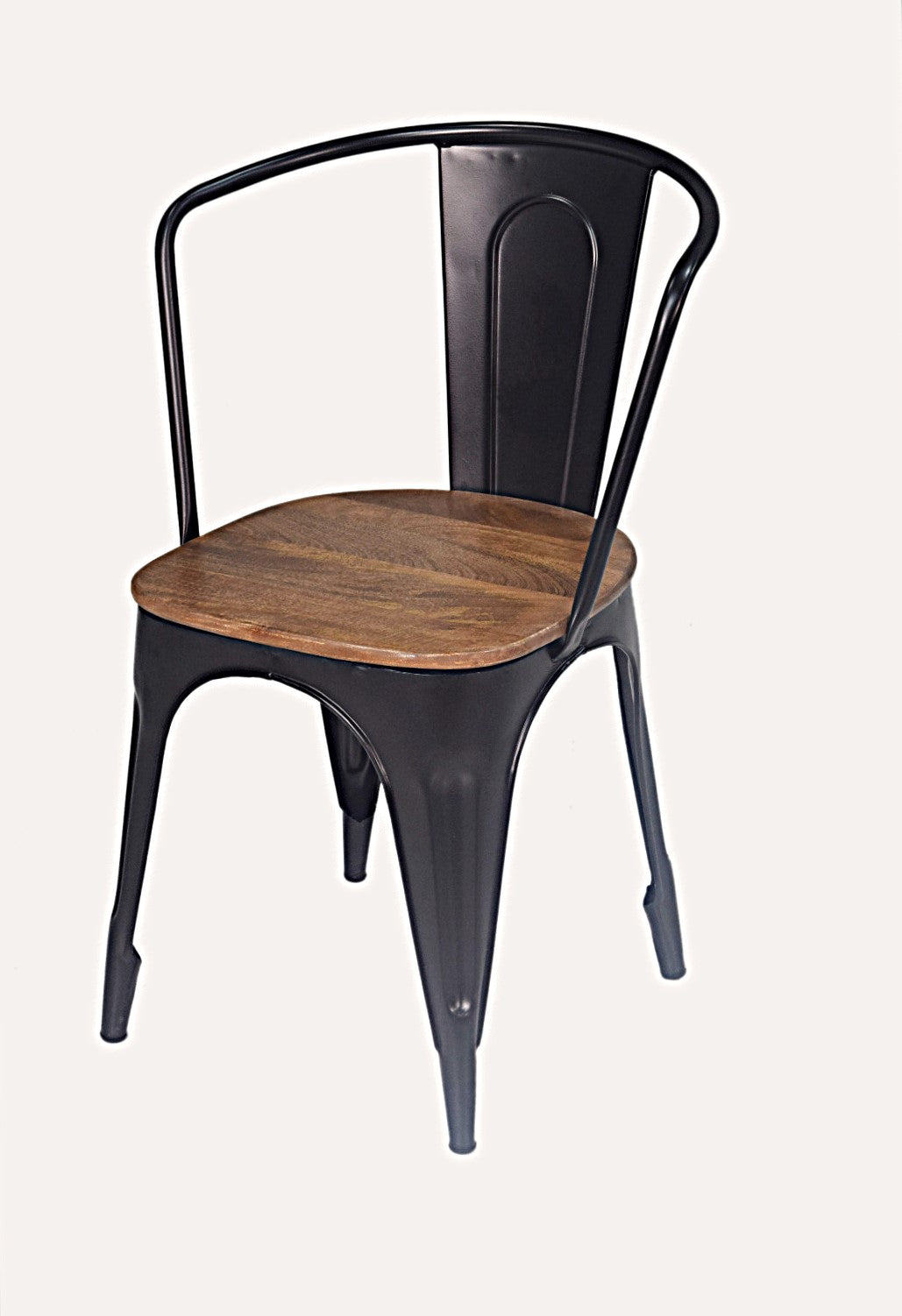 Ensemble de 2 Chaises Industry en acier noir et siège en bois de manguier