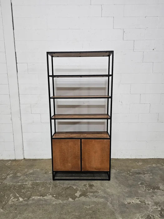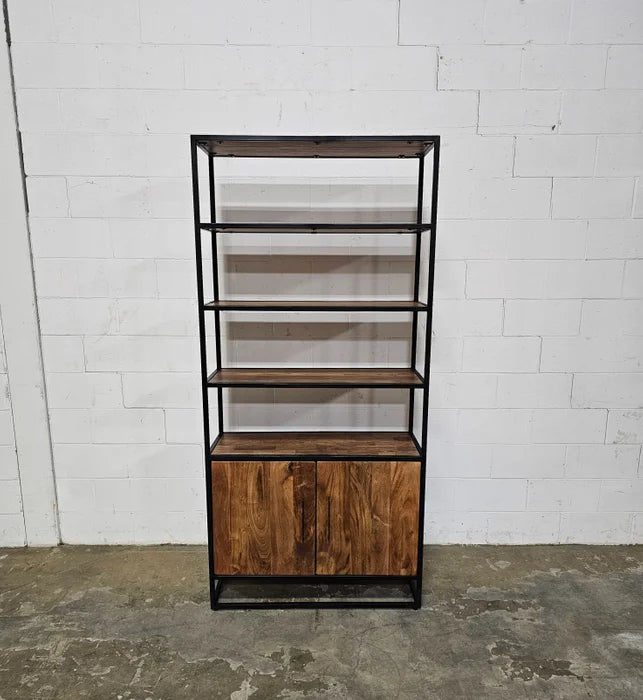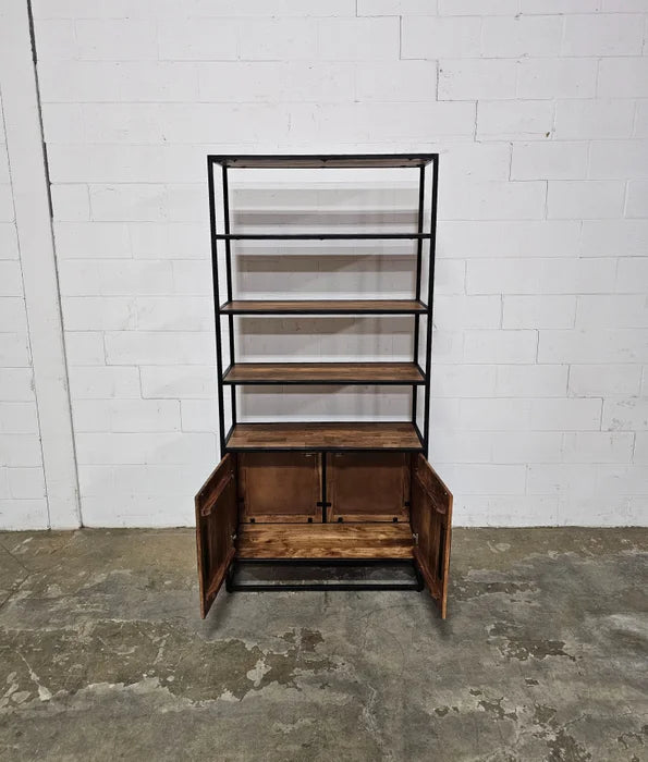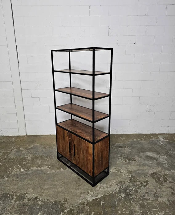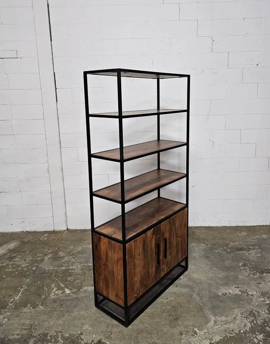 Étagère en Bois d'Acacia 2 portes sur structure d'acier noir