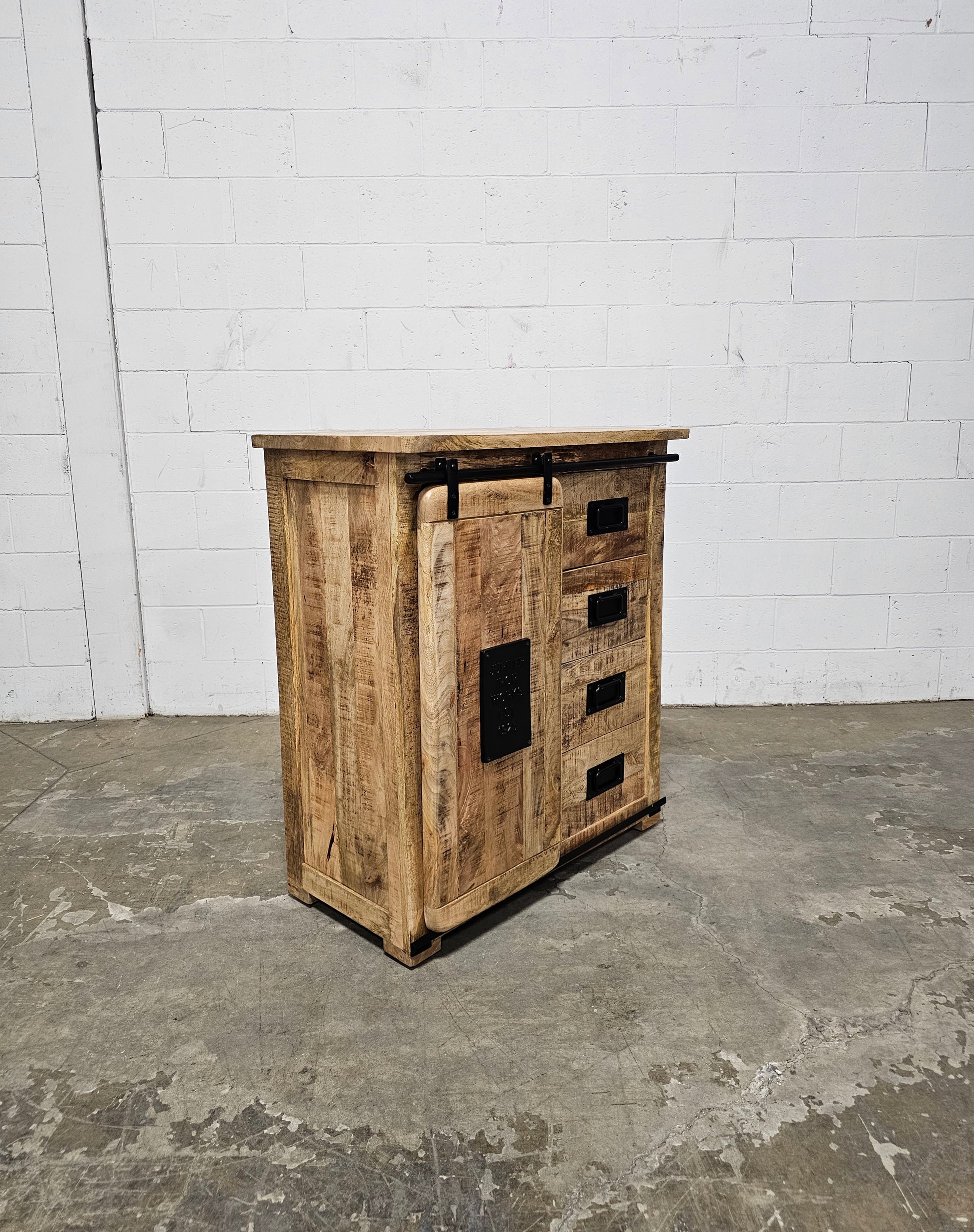 Meuble Commode Farmhouse en bois de manguier brut porte coulissante