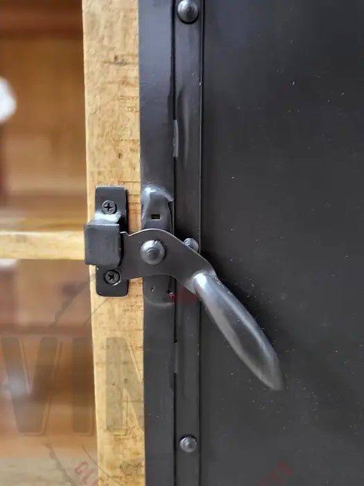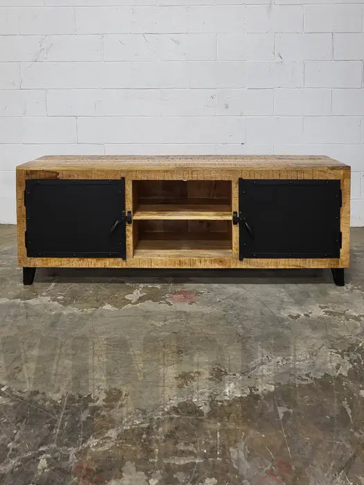 Meuble Télé bois de manguier avec porte d'acier noir