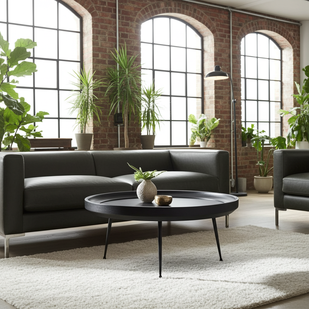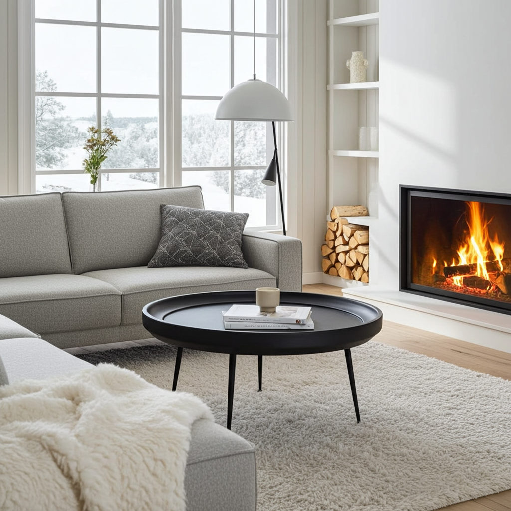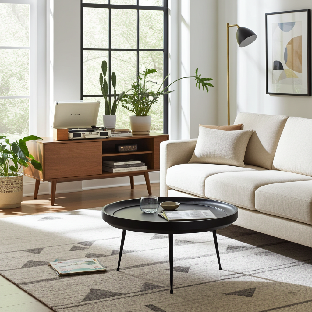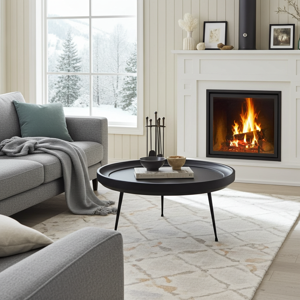 Table à Café ronde en bois de manguier fini noir
