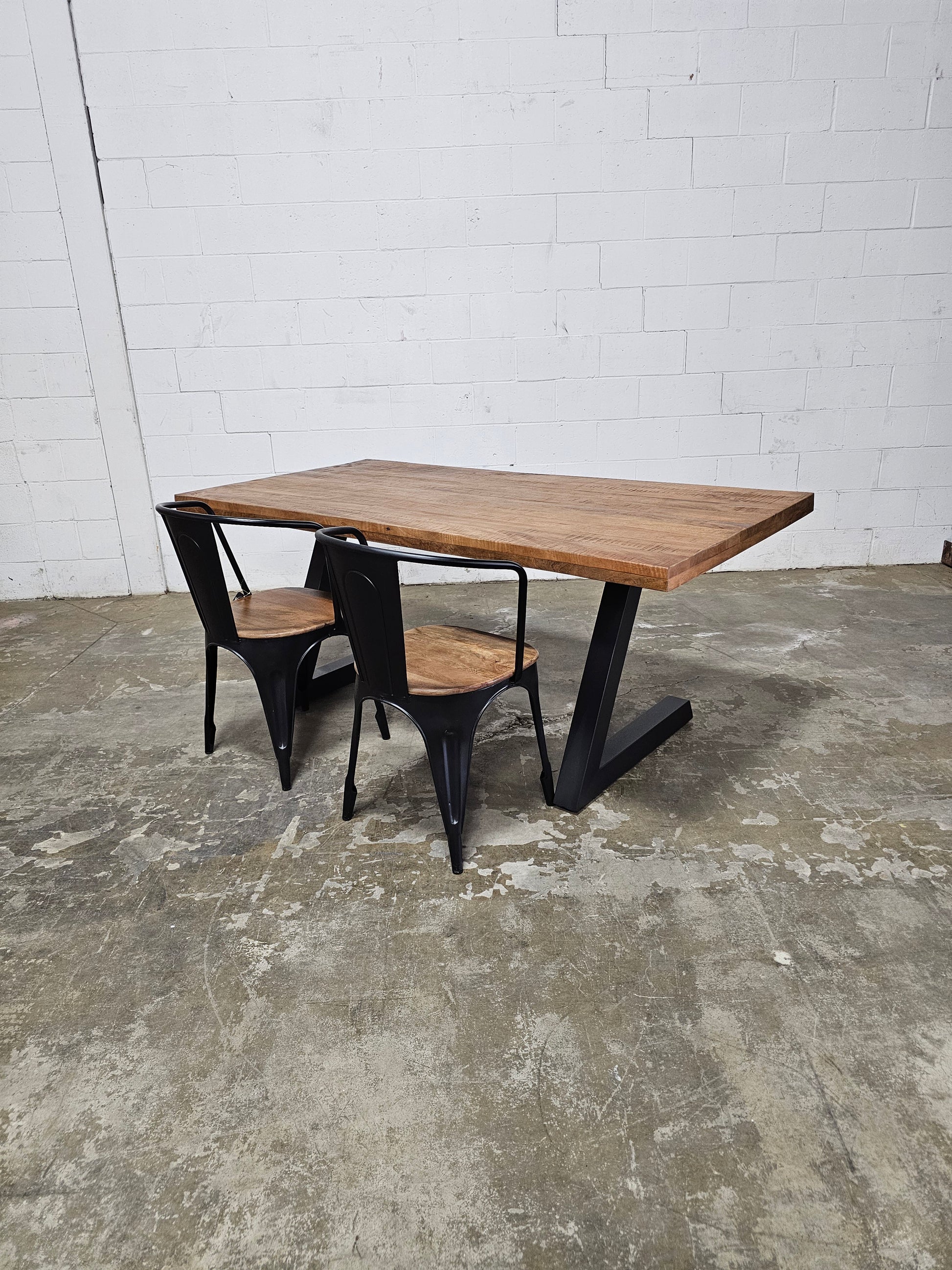 Table ou bureau en bois de manguier et patte en L acier noir.