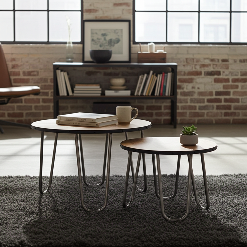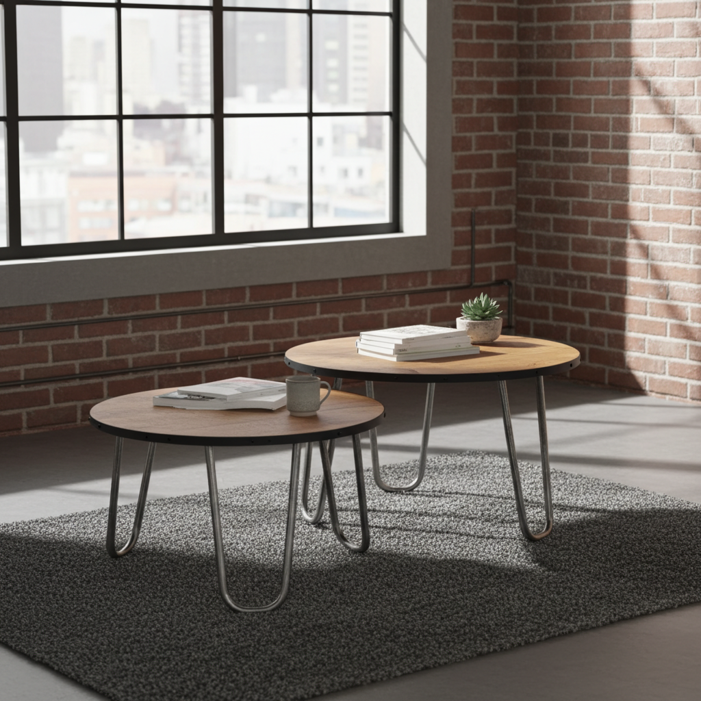 Tables basses en bois de manguier patte en épingle ensemble de 2