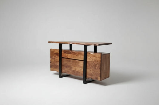 Meuble télé en bois d'Acacia Live Edge (Walnut) avec 4 tiroirs
