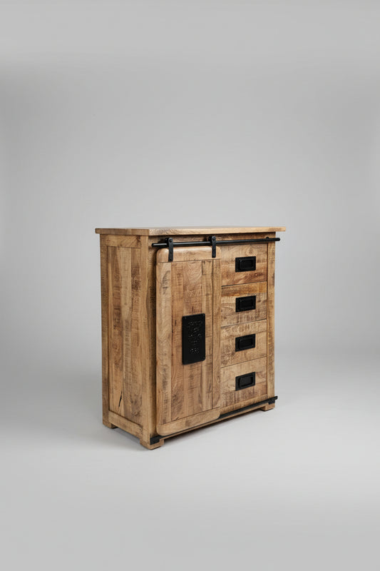 Meuble Commode Farmhouse en bois de manguier brut porte coulissante